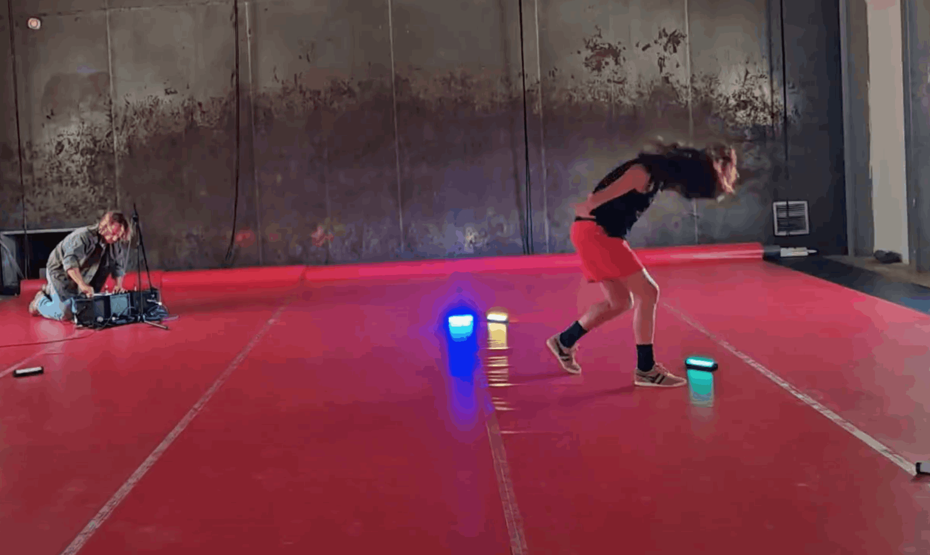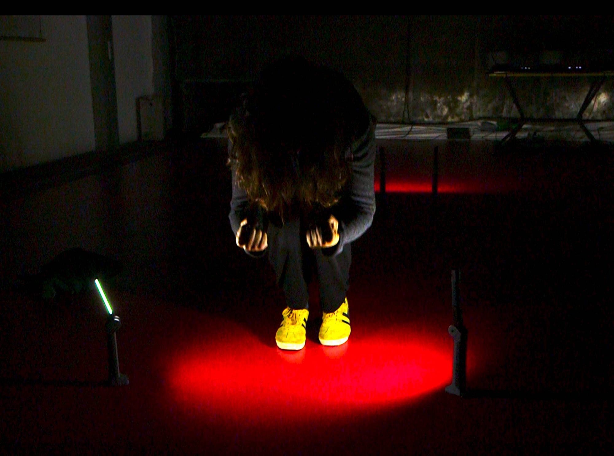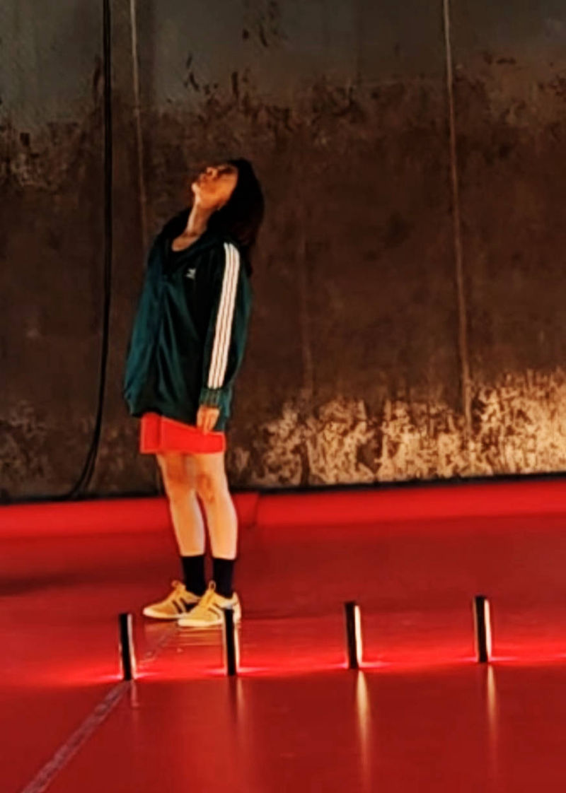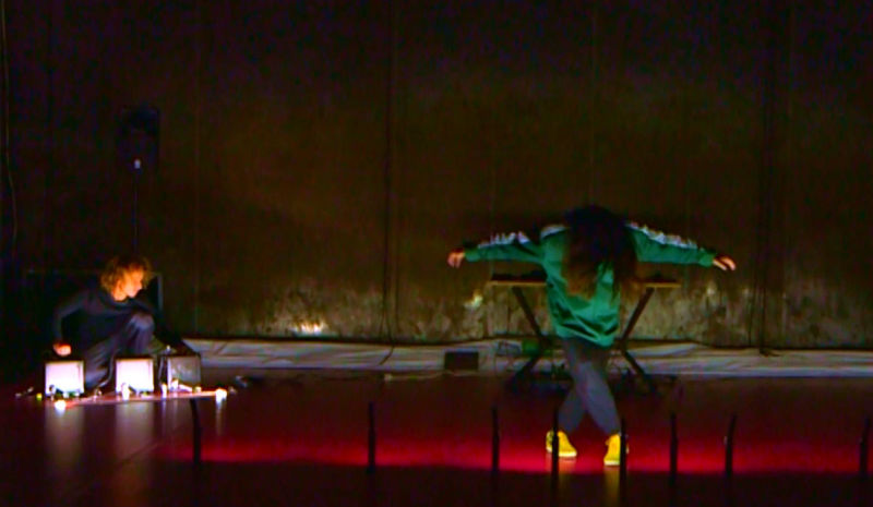 instable, en dialogue constant avec les mouvements de la danseuse. Ces oscillations imprévisibles incarnent le tremblement comme métaphore d’une esthétique de l’incertitude et de la relation.
